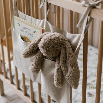 Tas penyimpanan gantung katun Linen, tas gantung kursi kereta bayi banyak kegunaan samping tempat tidur